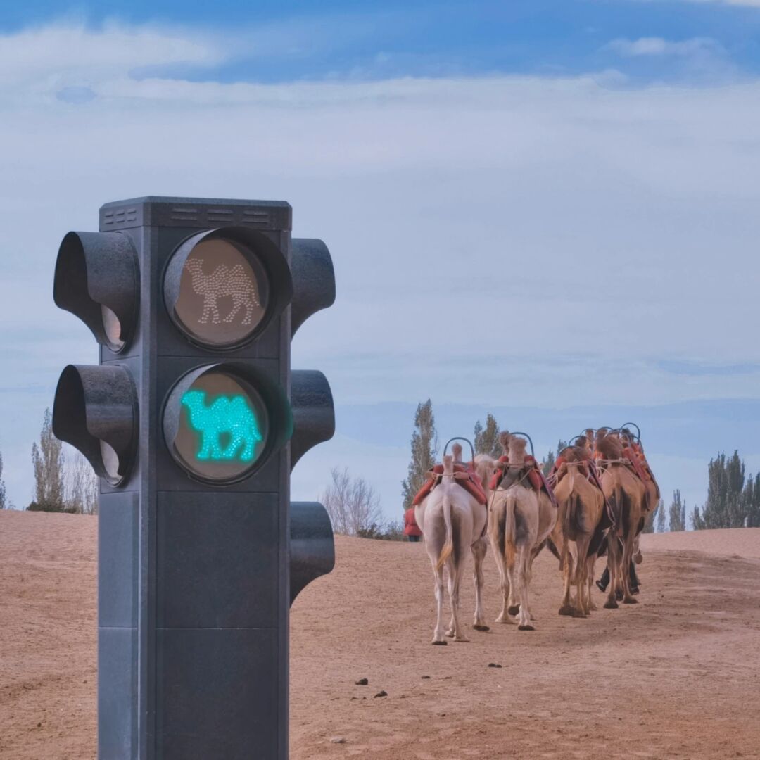 甘肃敦煌鸣沙山月牙泉--骆驼图案一体灯